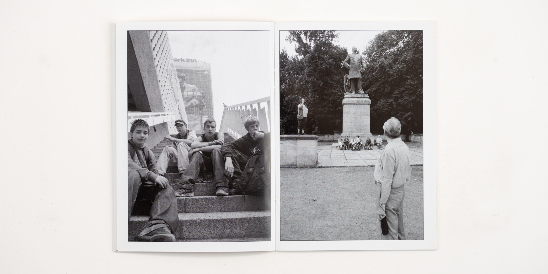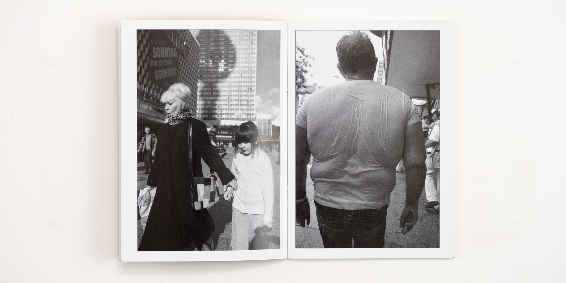 41 photographs from Berlin in portrait format. Black and white and color. All images were taken between 2003 and 2016. 44 pages, 300 copies