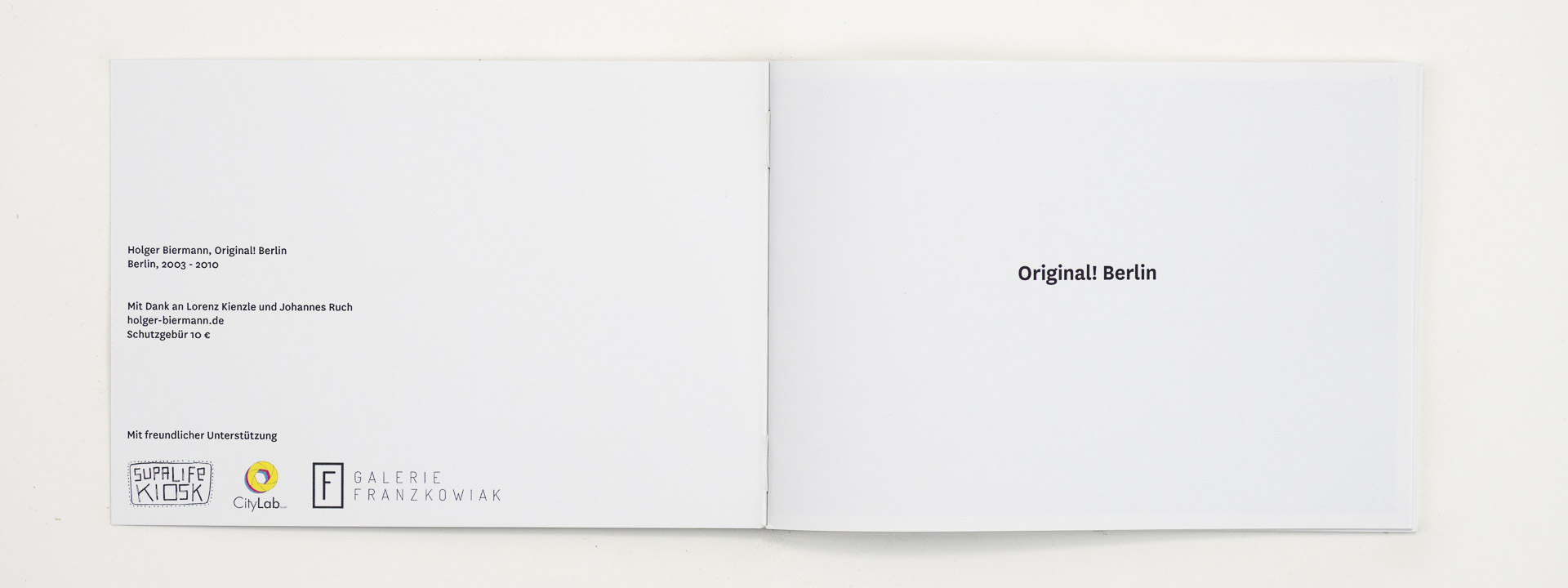 40 photographs from Berlin. Taken between 2003 and 2010 in black and white. Landscape format. 44 pages, 250 copies